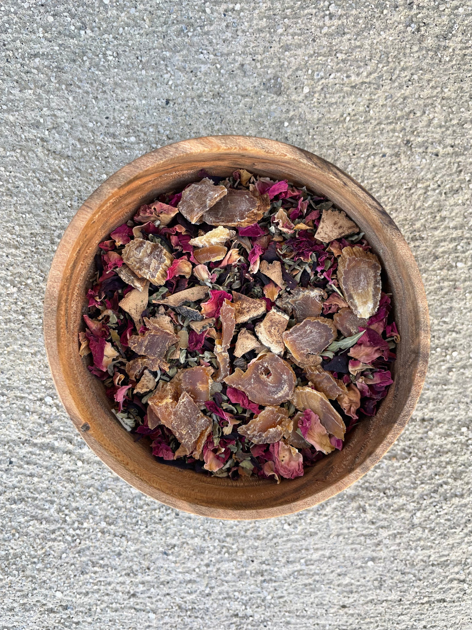 ingredients: rose, damiana, hibiscus, maca root, red ginseng