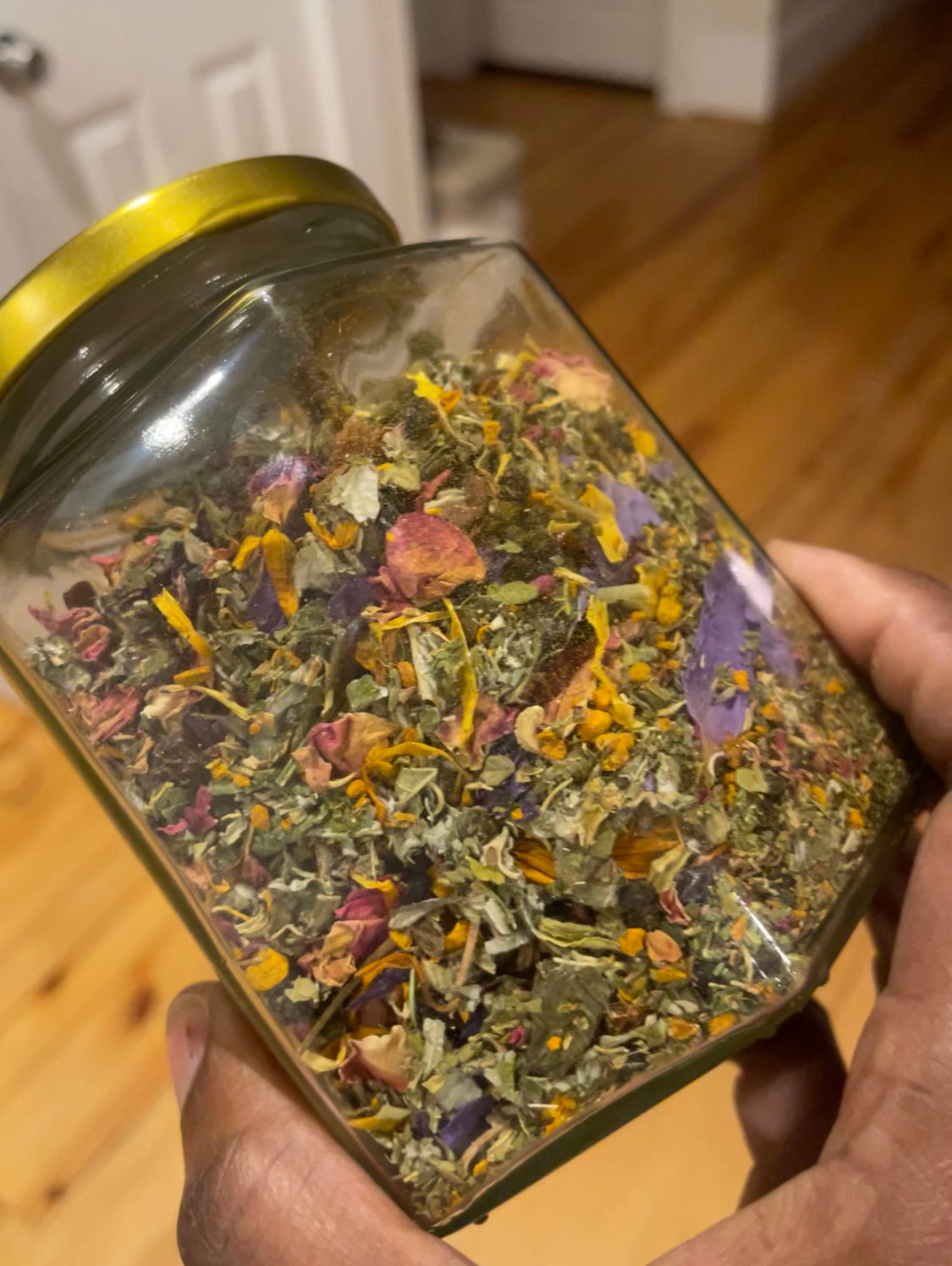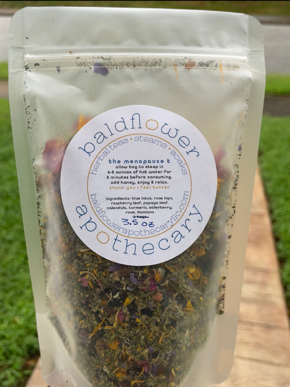 ingredients: blue lotus, calendula, damiana, elderberry, papaya leaf, raspberry leaf, rose hips, rose petals, turmeric